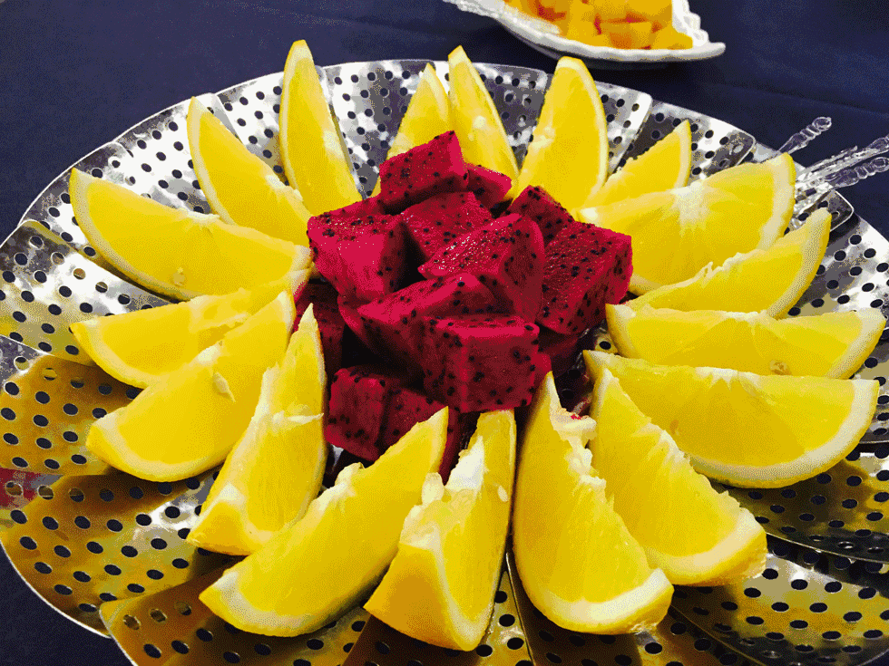吃著新鮮的水果和零食