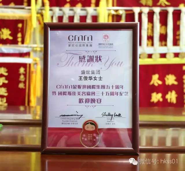 2016年6月14—16日,CMM蒙妮坦國際集團五十周年暨國際斯佳美容協會三十五周年答謝晚宴在香港灣仔會議展覽中心Grand Hall隆重舉行。作為美業異軍突出的盛世集團應邀出席,盛世集團董事長王俊華女士與盛世首席營銷總策劃Sophie老師一同前往香港,參加這次美業的盛典,行業大伽齊聚一堂,盛世集團又獲得了多項殊榮。祝愿CMM蒙妮坦國際集團的事業更進一步,再創輝煌!