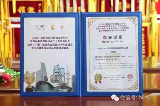 盛世集團獲得2015-2016亞洲健康美容國際影響力品牌獎