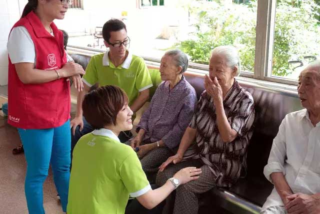 盛世家人在與一個年逾70的奶奶交談,老人高興地說道:“真是謝謝你們了,每到過節,你們都來看望我,陪我聊天,就像一家人,真的感到特別高興。”在親切的祝福問候中,老人們滄桑的臉上綻開了幸福的笑容,感激之情溢于言表。